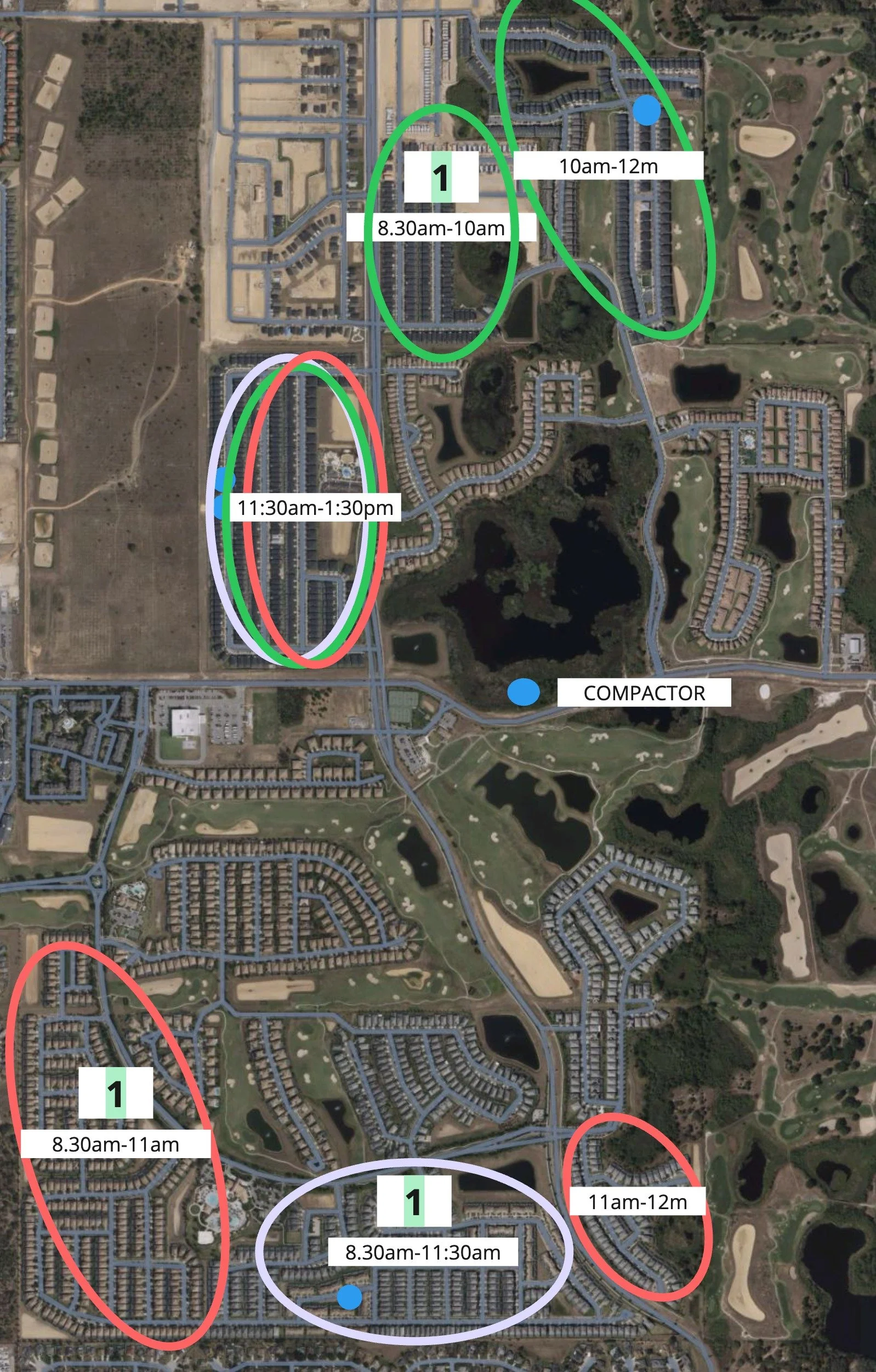 Pickup starts at 8am and finishes at 6pm. Estimated times for morning pickups are below. Afternoon pickup commences following completion of morning round and lunch.